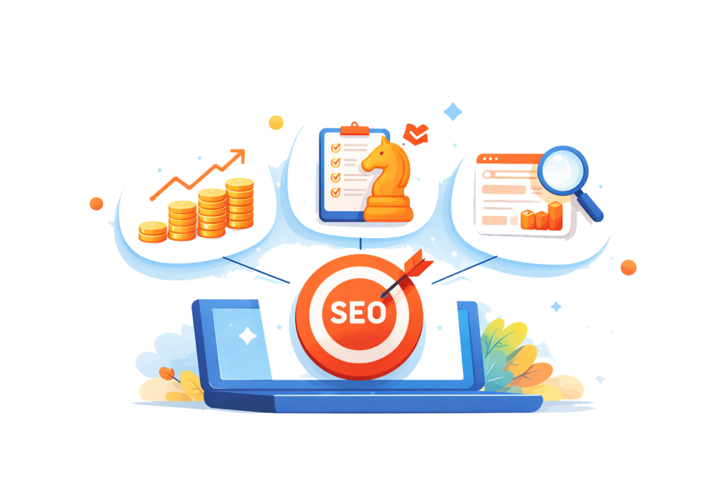 استراتژی سئو یک نقشه راه کامل برای رشد سایت است که شامل تحلیل وضعیت فعلی، تحقیق کلمات کلیدی، بررسی رقبا، طراحی ساختار صفحات، استراتژی محتوا، لینک‌سازی و تعیین اولویت اقدامات می‌شود. خروجی آن یک برنامه قابل اجراست، نه صرفاً یک گزارش تئوری.